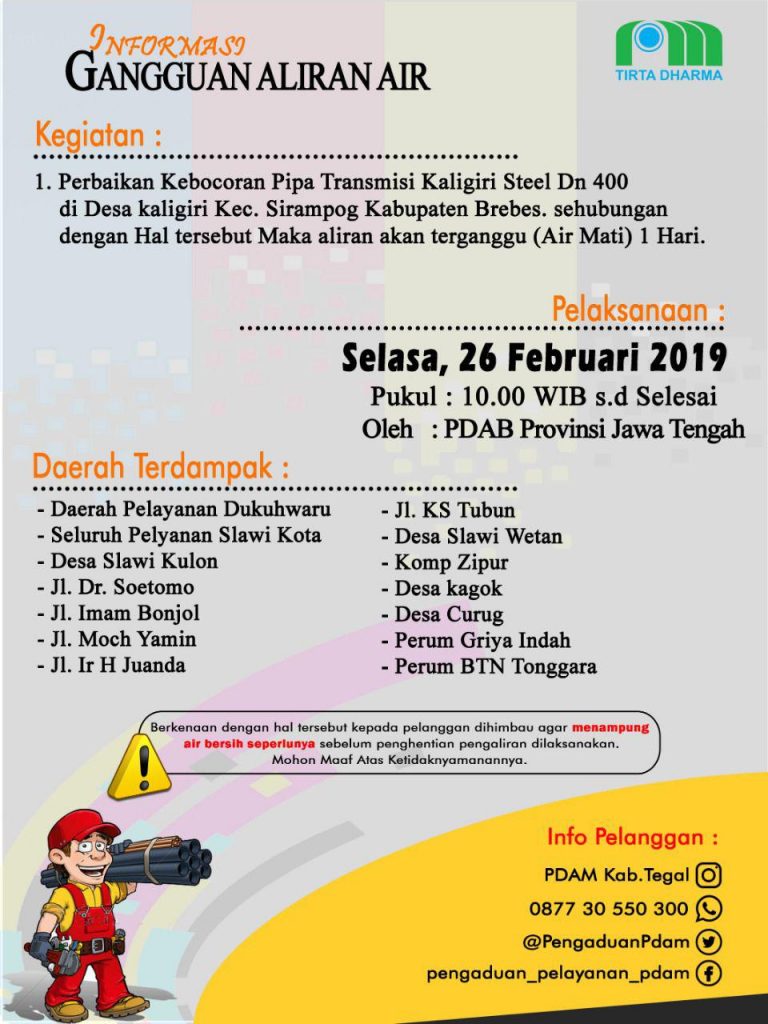INFORMASI GANGGUAN AIR / Info Gangguan Air / Oleh Perumda Air Minum Tirta Ayu Kab. Tegal Post Views: 102